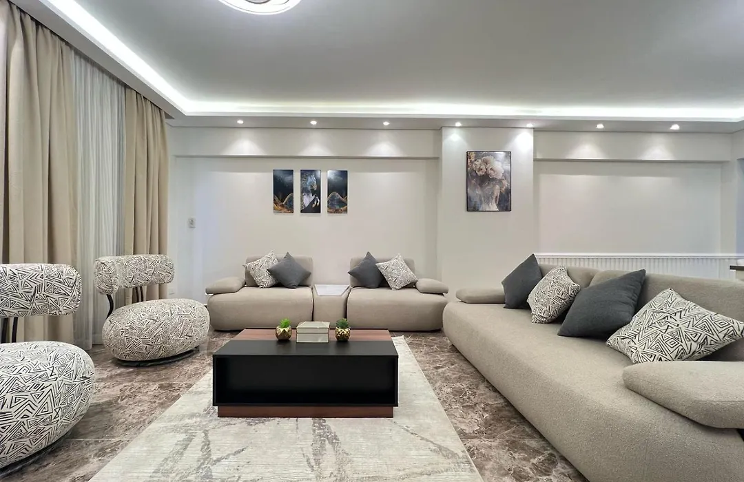 Chill Vibes 3 Bedroom Apartment In Rehab City comprises a balcony and a fully equipped kitchen and features views of the garden. At the accommodation, guests will enjoy the convenience of bath sheets and bathrobes in the bathroom. Moreover, there is a separate toilet and a shower as well.